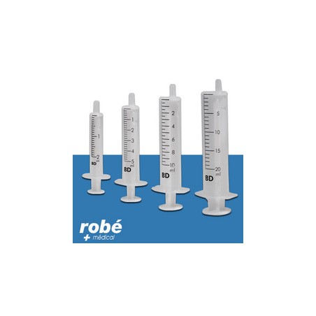 Seringues 2 pièces sans aiguille Becton Dickinson stériles, à usage unique.