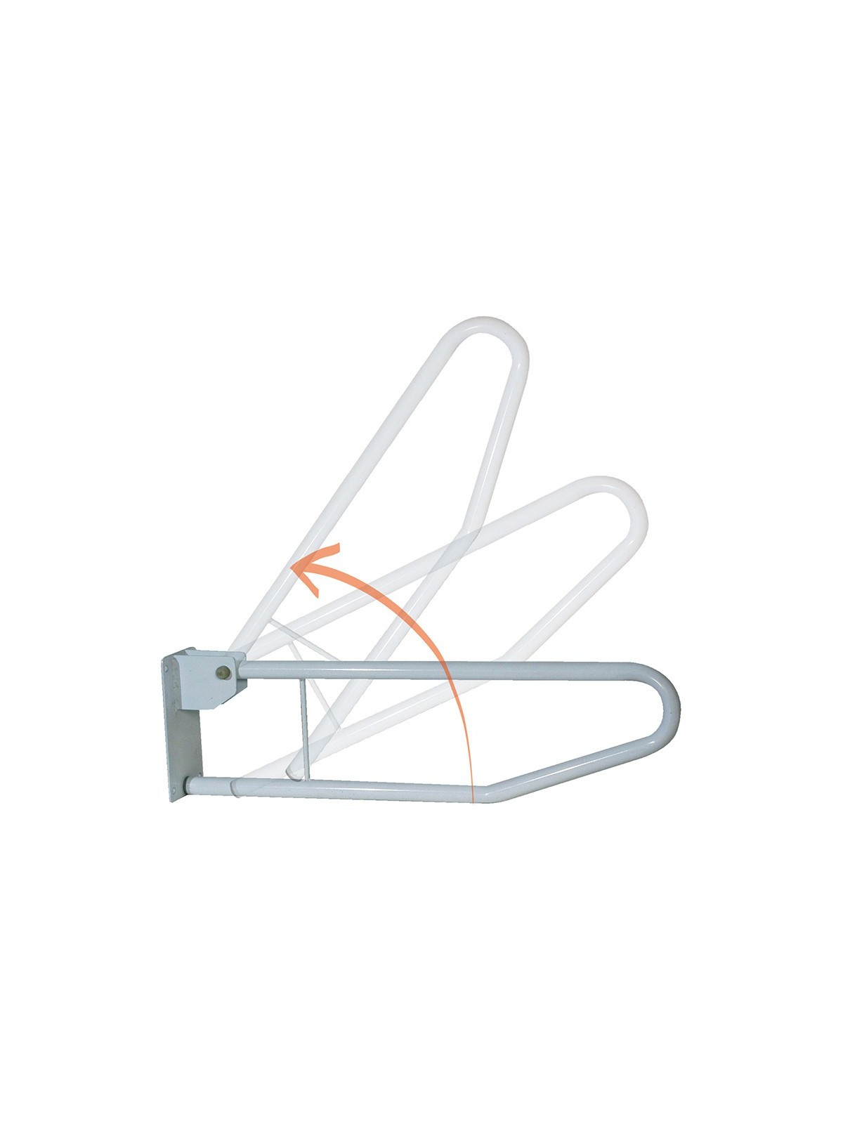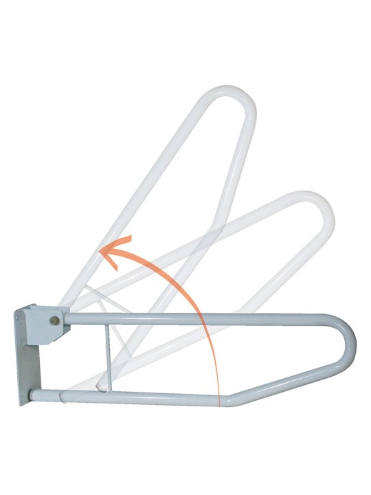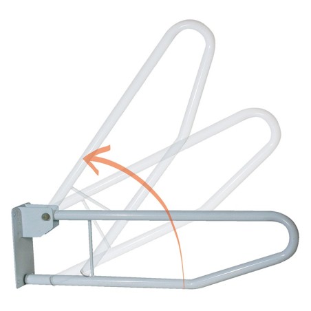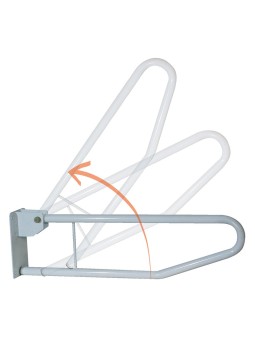 Cette barre d’appui se replie contre le mur après utilisation pour un encombrement minimum.